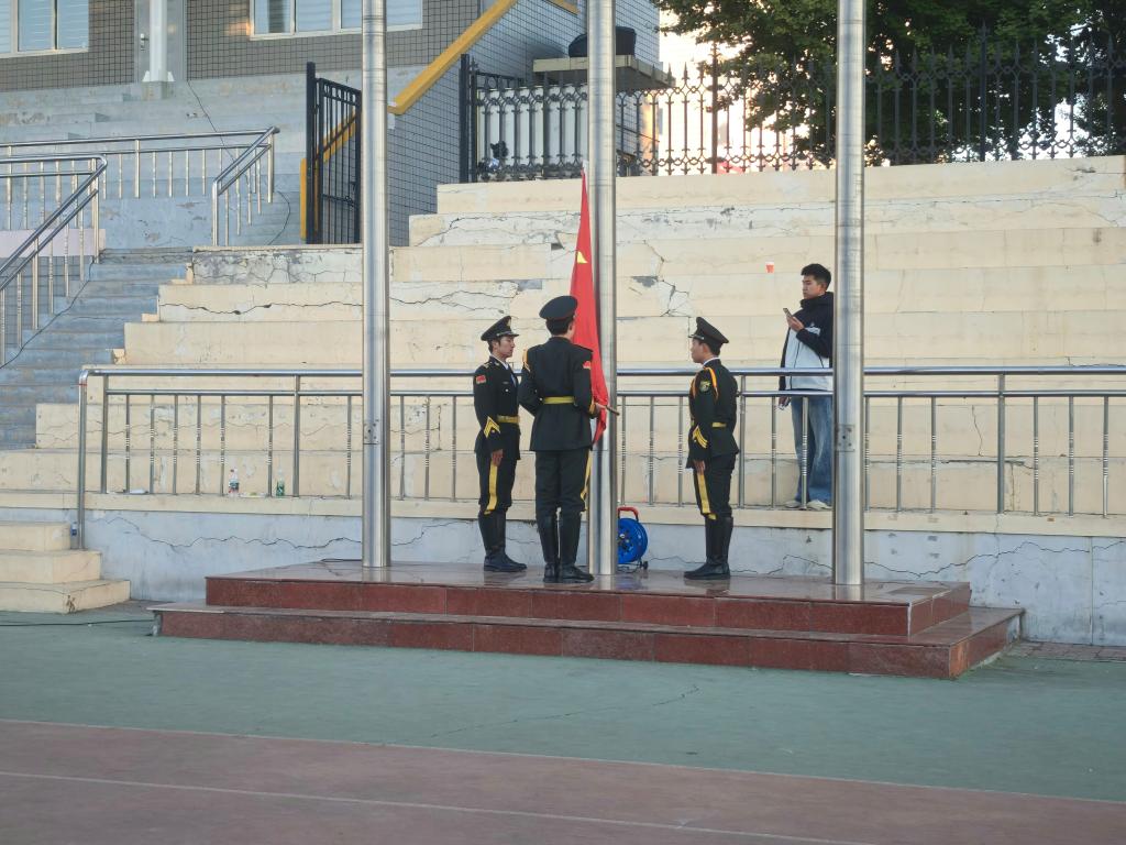 七时整,国旗护卫队迈着整齐的步伐,护卫着五星红旗走向升旗台。在雄壮的国歌声中,五星红旗迎着朝阳冉冉升起,全体师生肃立注目,齐声高唱国歌,现场洋溢着浓厚的爱国情怀。