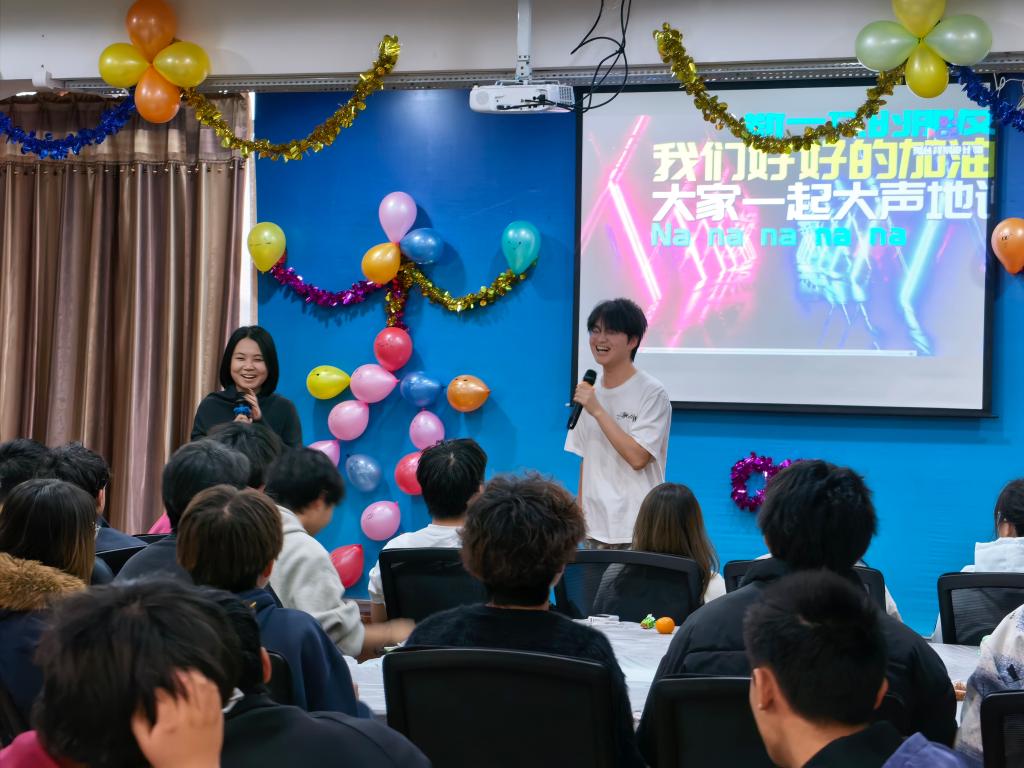 齐锦刚老师在活动中致辞,他介绍了学院一年来所取得的累累硕果,并对学生未来发展提出了殷切期望。随后,学生精心策编的7个文艺节目轮番登场,悠扬的歌曲旋律萦绕耳旁,动人的节拍不断将气氛一次次推向高潮。有趣的互动游戏贯穿全程,笑声与掌声交错成潮,同学们踊跃登场,台上台下融成一片欢乐海洋。